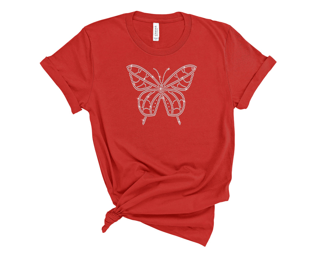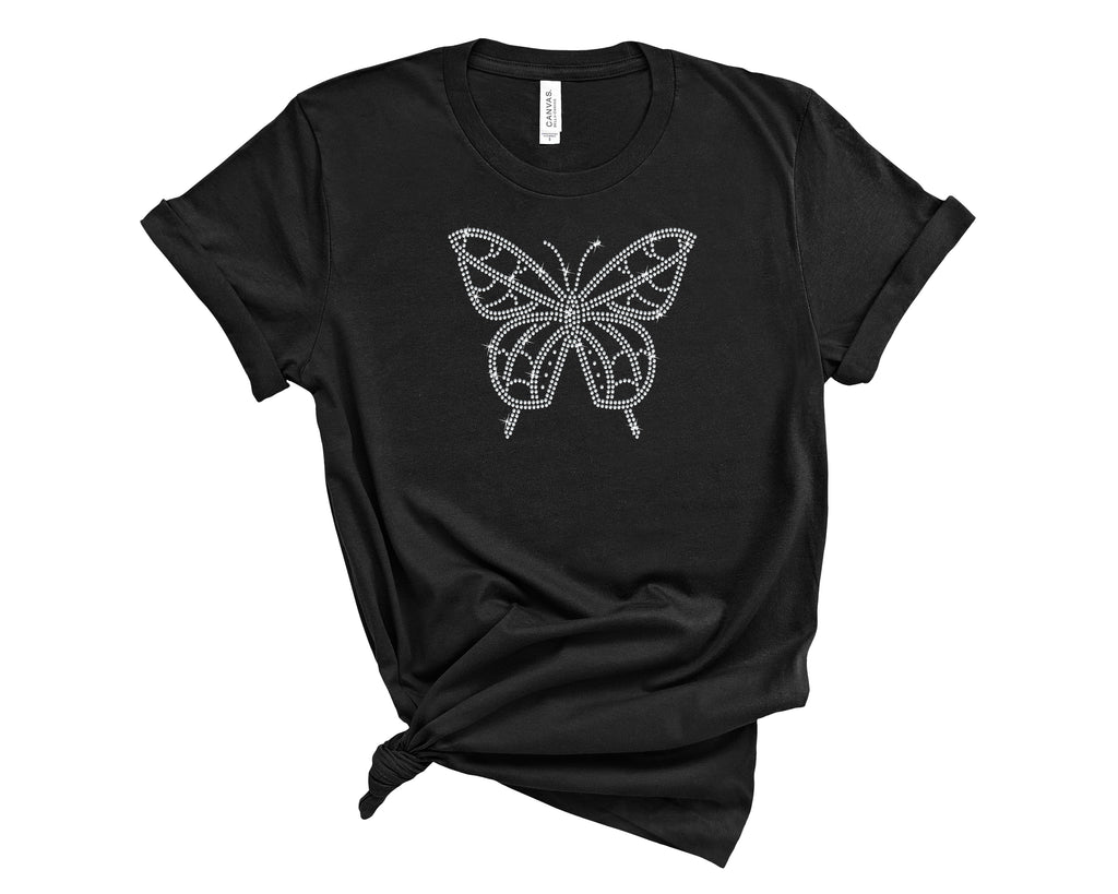 Butterflies and rhinestones go so well together! Stand out in this beautiful rhinestone t-shirt.