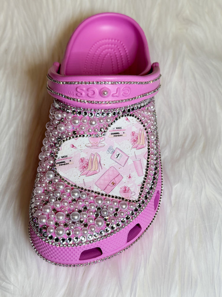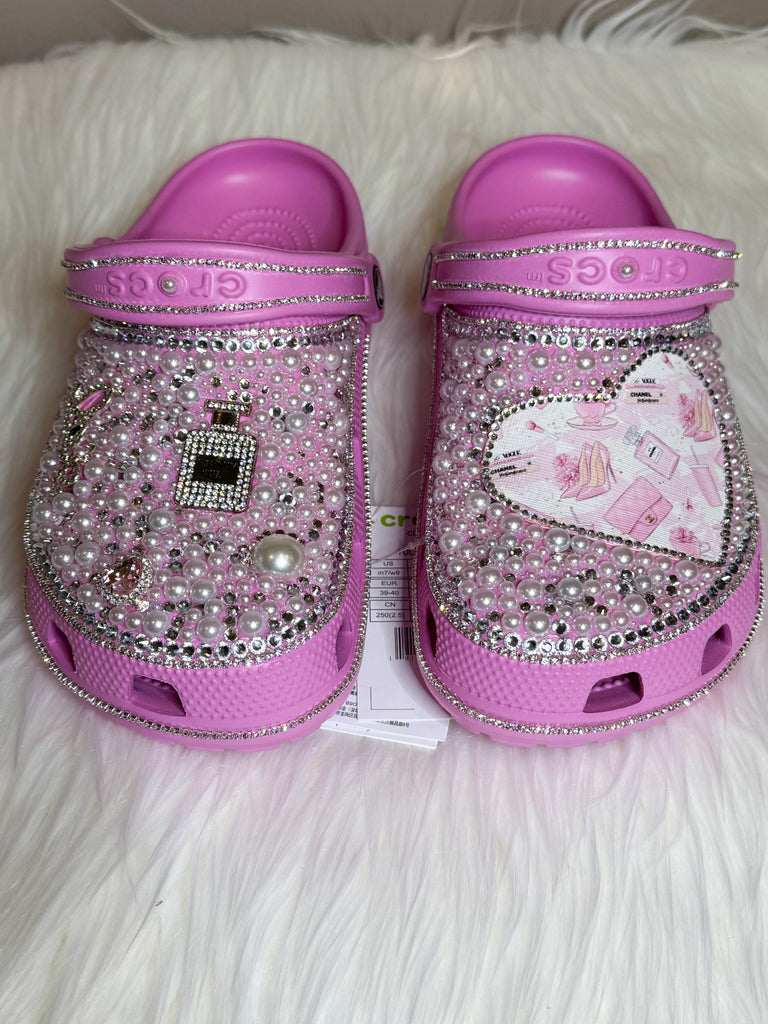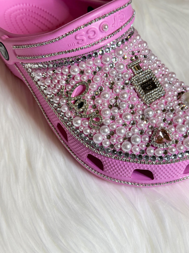 Rhinestone and Pearl Pink Crocs - Size 7 (Women's)