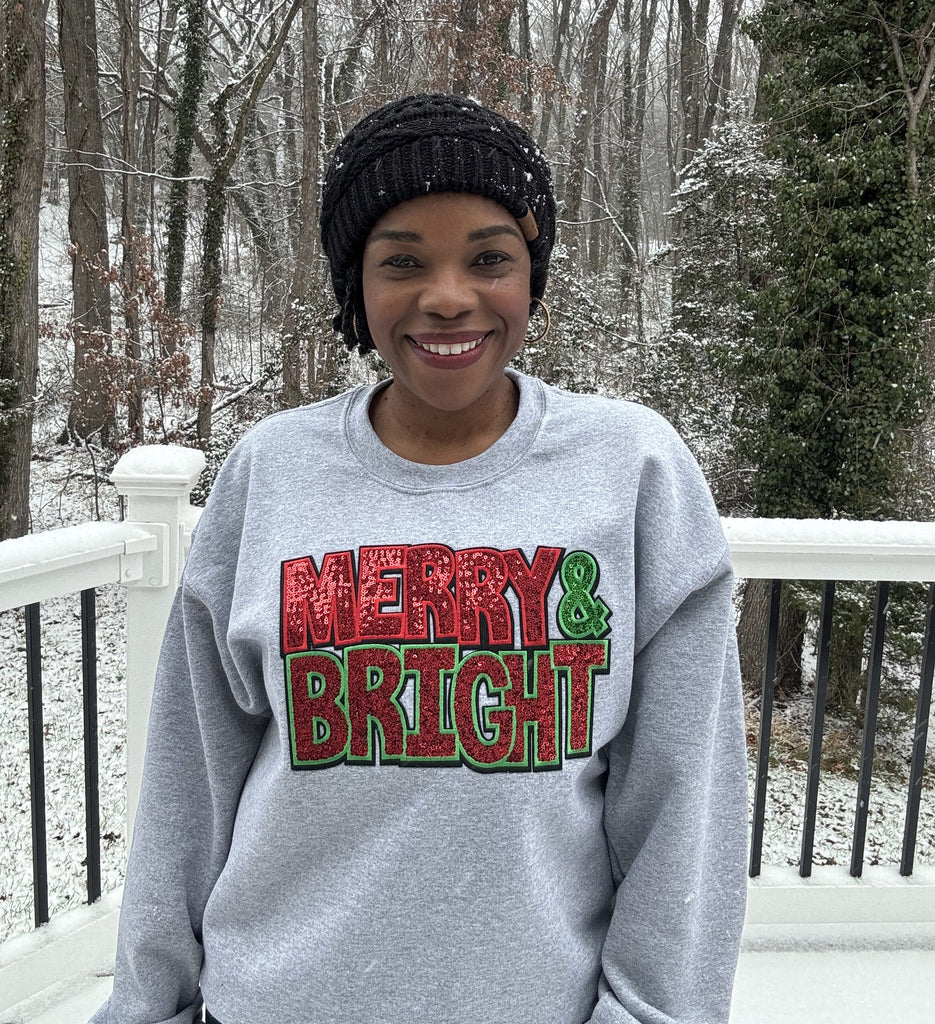 Elevate your holiday style with the Merry & Bright sweatshirt. The playful sequin design adds a touch of dazzle to any outfit, whether you pair it with your favorite jeans or leggings. Spread cheer and delight in this cheerful, comfortable top that's sure to become a seasonal staple.