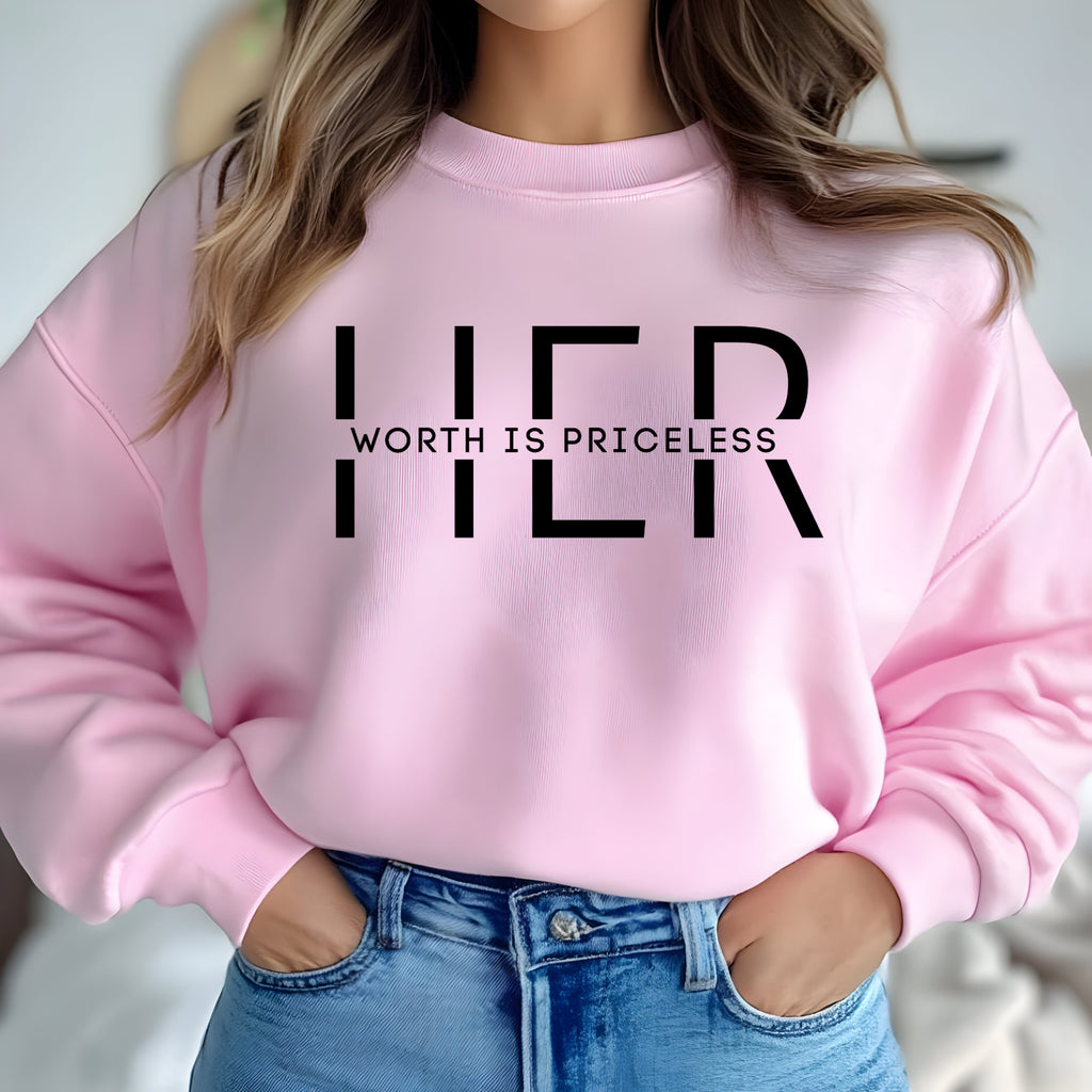 • Uplifting "Her Worth is Priceless" message printed on chest