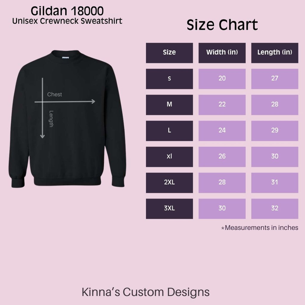 Available in sizes Small to 3XL with a unisex fit. You may choose your letter color choice (black or white). Black sweatshirts are only offered with white letters.