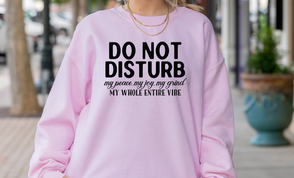 Spread inner calm and self-love wherever you go in this uplifting sweatshirt. The Do Not Disturb message tells the world to let you be while you protect your peace, joy and personal vibe.