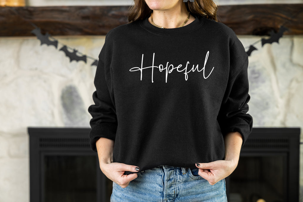 Make the impossible possible in the Hopeful Sweatshirt. This unisex sweatshirt features an uplifting message across the chest to motivate and inspire. With its soft cotton-poly blend and bold print, this piece combines comfort and style.