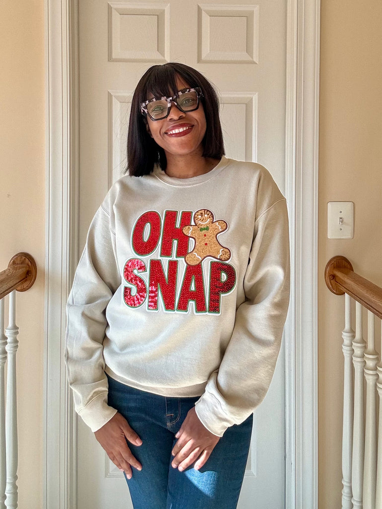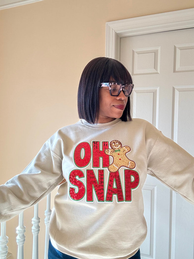 Add sparkle to your holiday look with the OH SNAP! sequin sweatshirt.