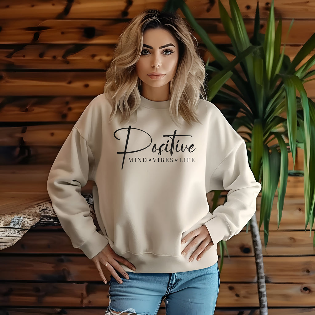 Elevate your mood and your style with the Positive Mind - Vibes - Life Sweatshirt. This cozy crewneck is designed to inspire positive thinking and radiate good vibes.